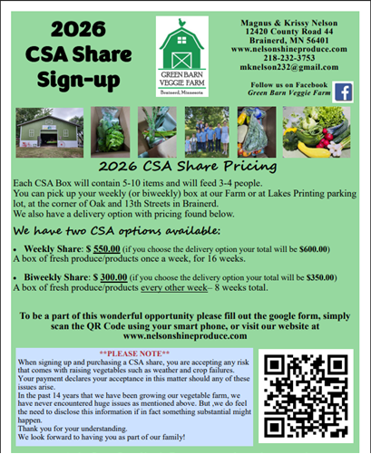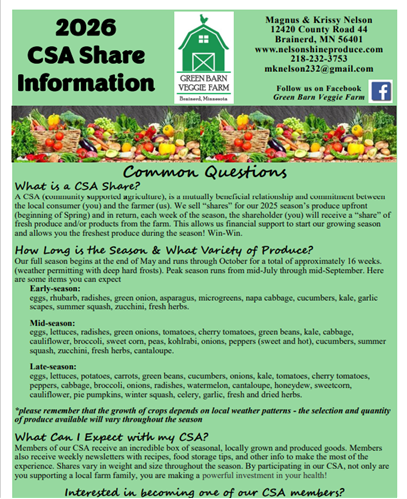 interested and would like additional information, please email us at nelsonshineproduce@gmail.com or call Ron at 218-232-3750...